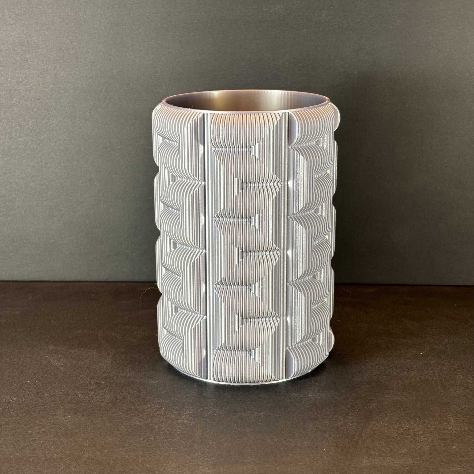 The Koot Vase stands out with its bold geometric pattern, offering a striking modern centerpiece that adds texture and character to any space. Perfect for fresh or dried floral arrangements.